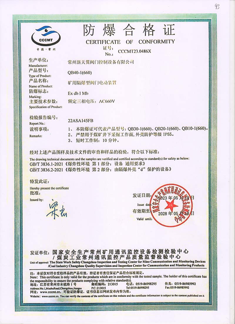 ZB20-24 200(660) 防爆合格證